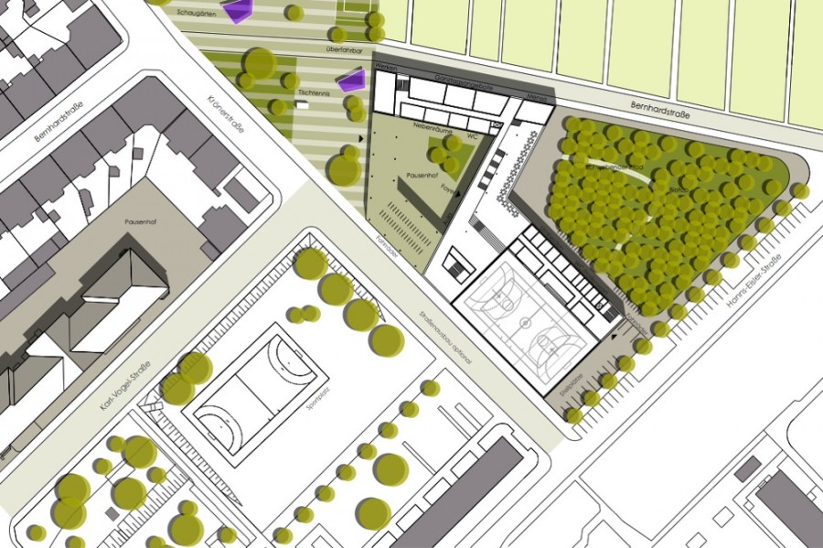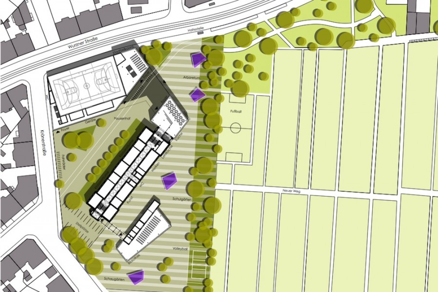 Im Leipziger Osten soll ein neuer Schulcampus mit einer Oberschule, Gymnasium, zwei Turnhallen und Stadtteilbibliothek entstehen. Dabei soll eine vorhandenes Gründerzeitschulgebäude erweitert werden.