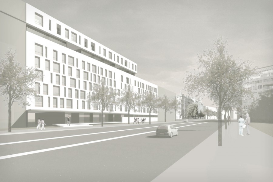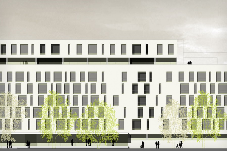 In zentraler Lage am Leipziger Grassimuseum soll ein großes Alten- und Pflegeheim gebaut werden. In diesem Rahmen wurde ein Fassadenkonzept für den großen Baukörper entwickelt. Grundidee ist die klare Ablesbarkeit der halböffentlichen Erdgeschosszone, der Obergeschosse und der Dachgeschosszone. Die große Putzfassade der Obergeschosse wird durch großzügige Fensteröffnungen in einer spielerischen Anordnung geprägt.