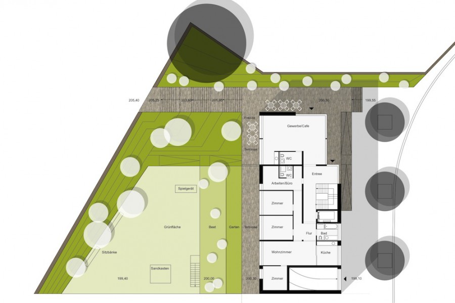 Das Gebäude markiert im Stadtraum den Umlenkpunkt am Ende der Maximilian-Welsch-Strasse im Erfurter Zentrum. Dies wird durch einen klar gestaffelten Körper mit seiner Klinkerfassade erreicht. Auf einem Tiefgeschoss mit Stellplätzen sind 15 Wohnungen mit unterschiedlichen Zuschnitten geplant.