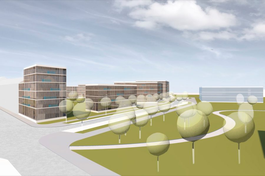 Das Quartier definiert einen neuen Übergang zwischen dem gründerzeitlichen Bestand und kleinen Häusern am Stadtrand. Die Starke Achse der Prendel-Allee wird räumlich fortgesetzt. Im Zusammenspiel mit den Grünflächen des Zaubergartens entsteht ein offener Campus mit Sporthalle, Schule, KITA und Schwimmhalle. Die schlangenartige Wohnbebauung gruppiert sich um einen geschützten Hof. Im Norden wird der Gewerbestandort ergänzt.