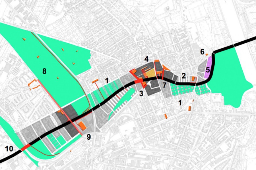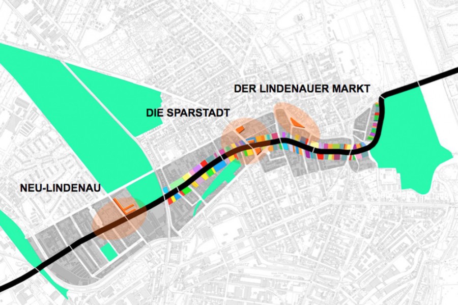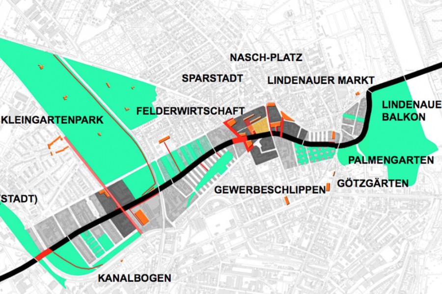 Für den konzeptionellen Stadtteilplan Leipzig-West wurde der Teilbereich der Lützner Straße untersucht. Zu den verschiedenen Ebenen wie Verkehr, Funktion, Vernetzung, Freiraum wurden Interventionen entwickelt und Teilbereiche vertieft. Wichtigste Grundidee ist die Sichtbarmachung und das Inerscheinungtreten der zahlreichen Institutionen und Potentiale am Band der Lützner Straße.