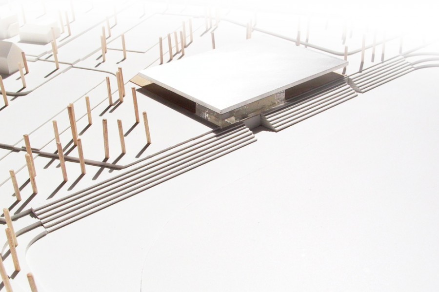 In einer Hanglage im dörflichen Umfeld der Stadt sollte eine neue Dreifeldsporthalle errichtet werden. Das Konzept sah vor, den Baukörper an den vorhandenen Sportplatz anzulagern und um ein Geschoss abzusenken. Der oberirdische Teil wurde von einem klaren Dach über einer durchgehenden Verglasung geprägt, der Blick ins Tal wurde freigehalten. Im Untergeschoss wurden die Nebenräume streng um das Spielfeld gruppiert und somit gleichzeitig die Verknüpfungen zum Sportplatz erreicht.
